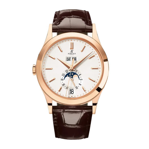 Annual Calendar 38 – White Dial | Rose Gold Tone Case & Brown Leather Strap