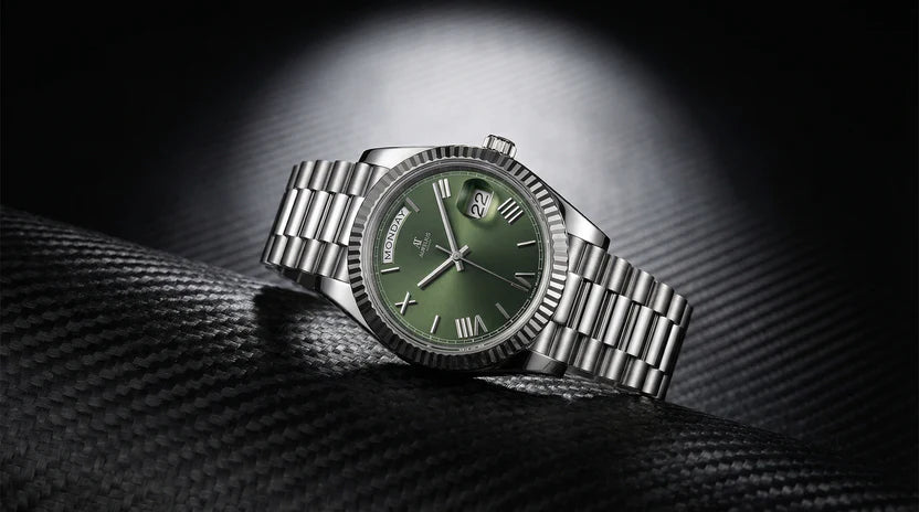 Annual Calendar 41 – Grey Sunburst Dial | Steel Case & Black Leather Strap